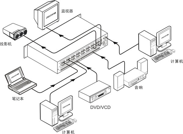 支持8路音視頻信號輸入,2/4/8路音視頻信號輸出。